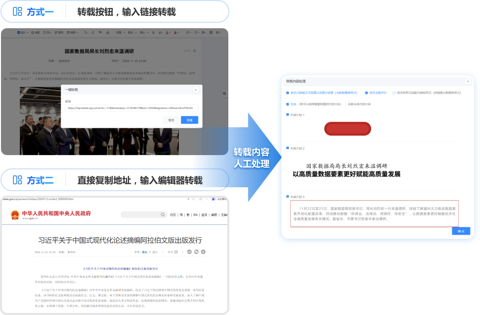 整合各类采集资源,形成采集资源中心,供用户直接转载使用,并定期对原文进行可用性监测。