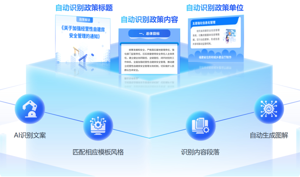自动识别政策文件中的主要信息要素,比如某一项政策的实施条件、依据、标准、执行部门等等。